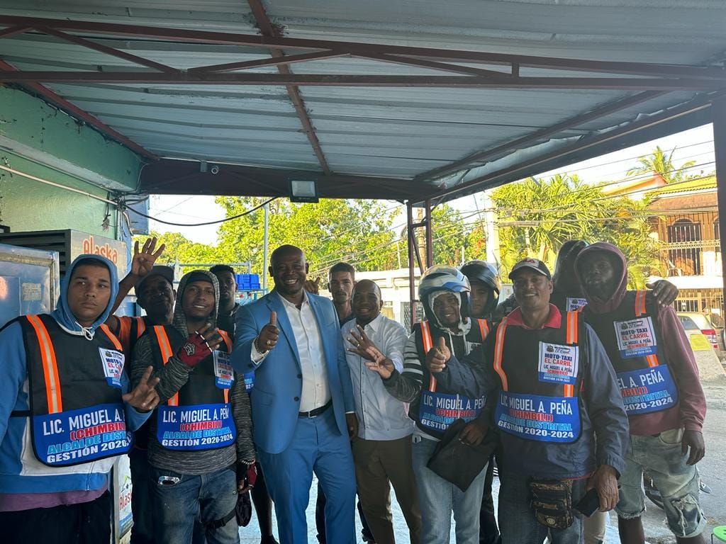 El Carril, Distrito Municipal. El Alcalde Distrital Miguel Ángel Peña Pozo (Chimbili) continuó este jueves con el operativo de identificación de los motoconchistas en este Distrito, dotando de chalecos a los mismos.