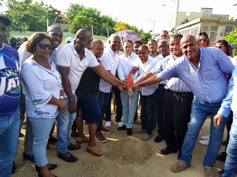 Peña en el día de ayer en presencia de las Juntas de Vecinos, Comunitarios, Pastores y Dirigentes Políticos realiza el primer picazo para dar inicio al 90 % de las construcciones de Aceras y Contenes en este sector del Renacimiento.