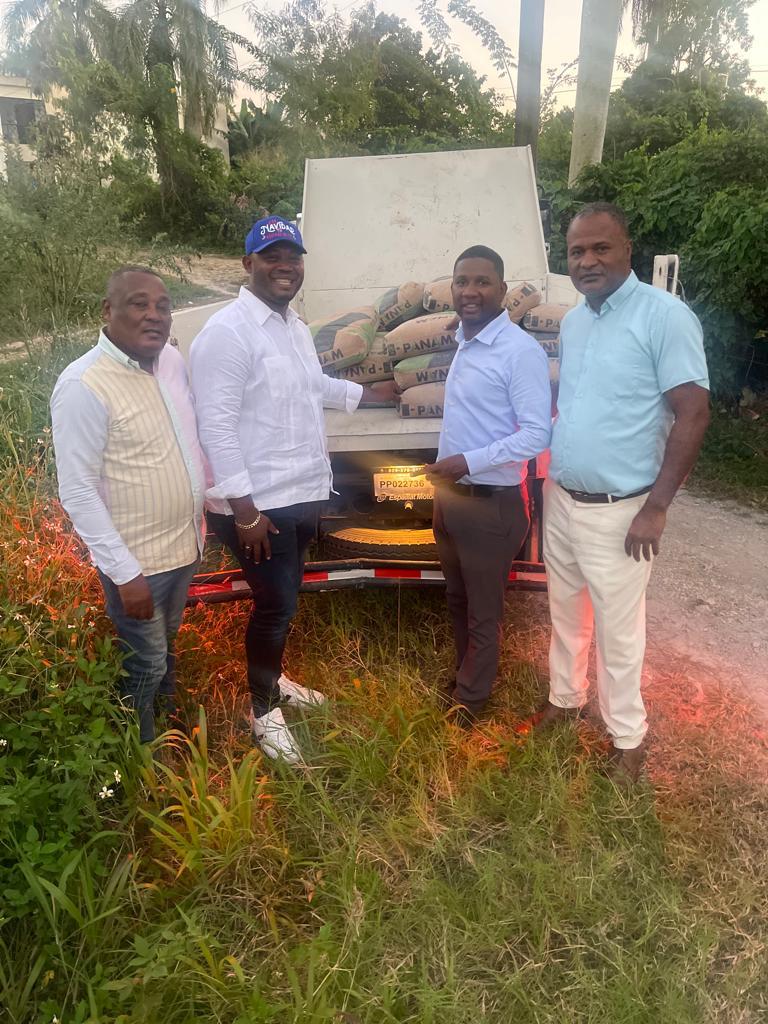 Peña después de una solicitud de materiales de construcción para cambiar de piso de tierra por cemento a la iglesia cristiana del Carril que pastorea el señor Aneudys acude en su auxilio para que sea una realidad su petición.