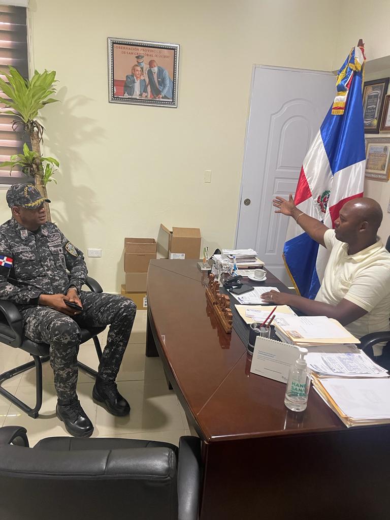 En un encuentro en el despacho de Peña con el Coronel de Los Santos abordaron la ola de delincuencia que está afectando al Distrito Municipal El Carril, donde se plantearon acciones que tomarán en lo adelante para bajar las acciones delictivas de los antisociales.